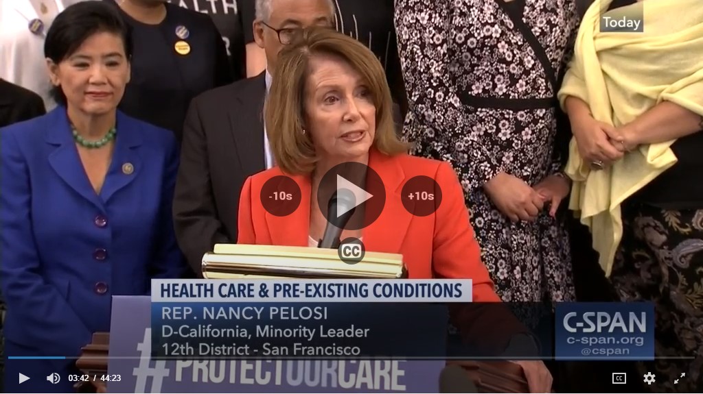 Congresswoman Pelosi held a press conference to highlight the importance of the Affordable Care Act's key provisions protecting people with pre-existing conditions.